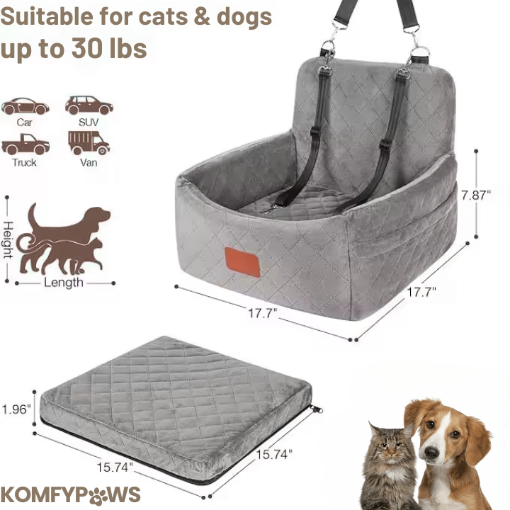 Try the Komfy Kruiser for 30 days and see how it changes car rides for you and your furry friend. If it doesn’t make trips calmer and more enjoyable, return it for a full refund—no questions asked.