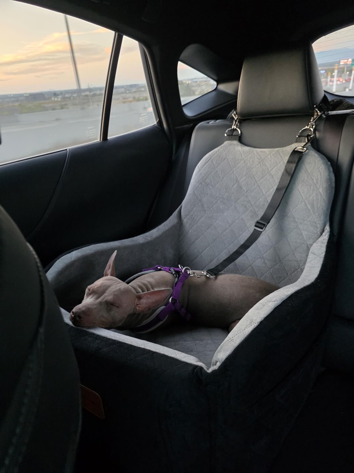 Two adjustable straps attach the seat to the car’s headrest and seatbelt, creating airplane-grade anchors that hold it securely even during sudden stops. Side impact protection walls and a non-slip base keep pets stable and protected throughout the ride.